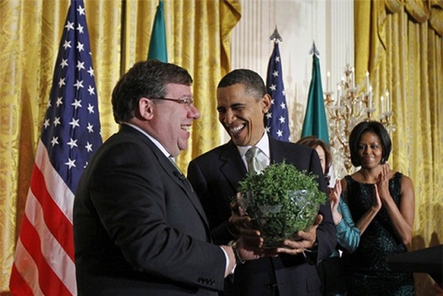 Tổng thống Mỹ Barack Obama nhận quà tặng từ Thủ tướng Ireland năm 2010. (Ảnh: AP) |