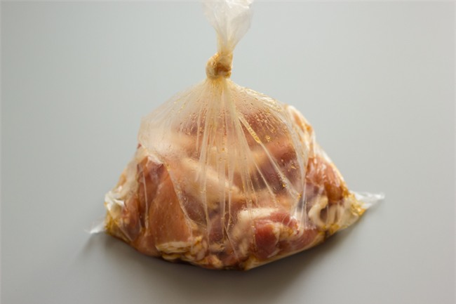Cho thịt lợn vào túi, thêm sốt ướp thịt nướng vào trộn đều cho thịt thấm nước sốt.