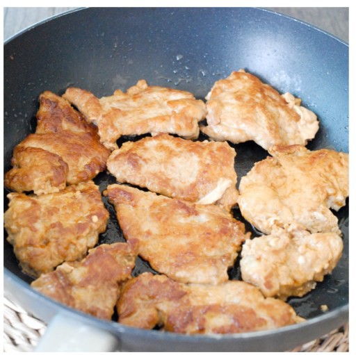 Sau thời gian ướp thịt cho thịt chiên vàng đều 2 mặt.