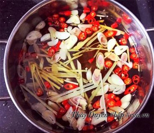 Bước 4: Cách pha nước ngâm móng giò: 1 bát nước mắm ngon, 3 bát nước, 1 bát giấm hòa trong nồi rồi đun sôi để nguội. Cho thêm đường, sả, ớt, gừng (cho đậm đà hơn một chút khi ngấm vào móng giò là vừa, không nên nhạt quá).