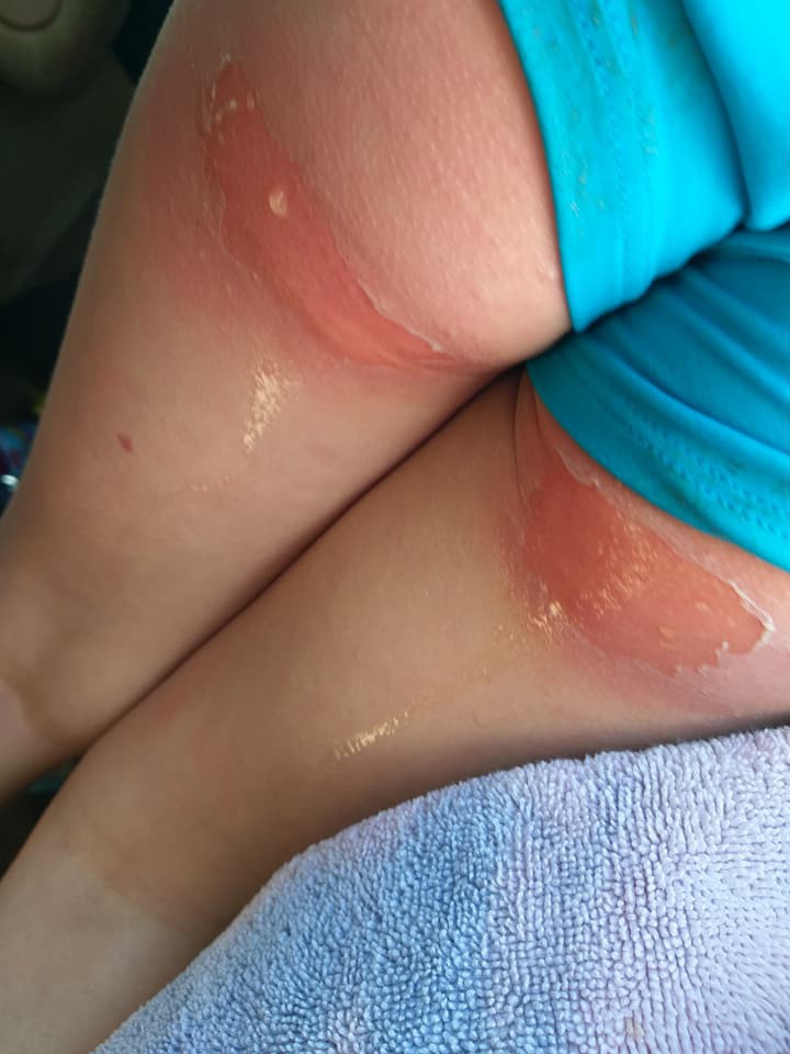 Vết bỏng đáng sợ của cô bé 4 tuổi sau khi chơi cầu trượt.