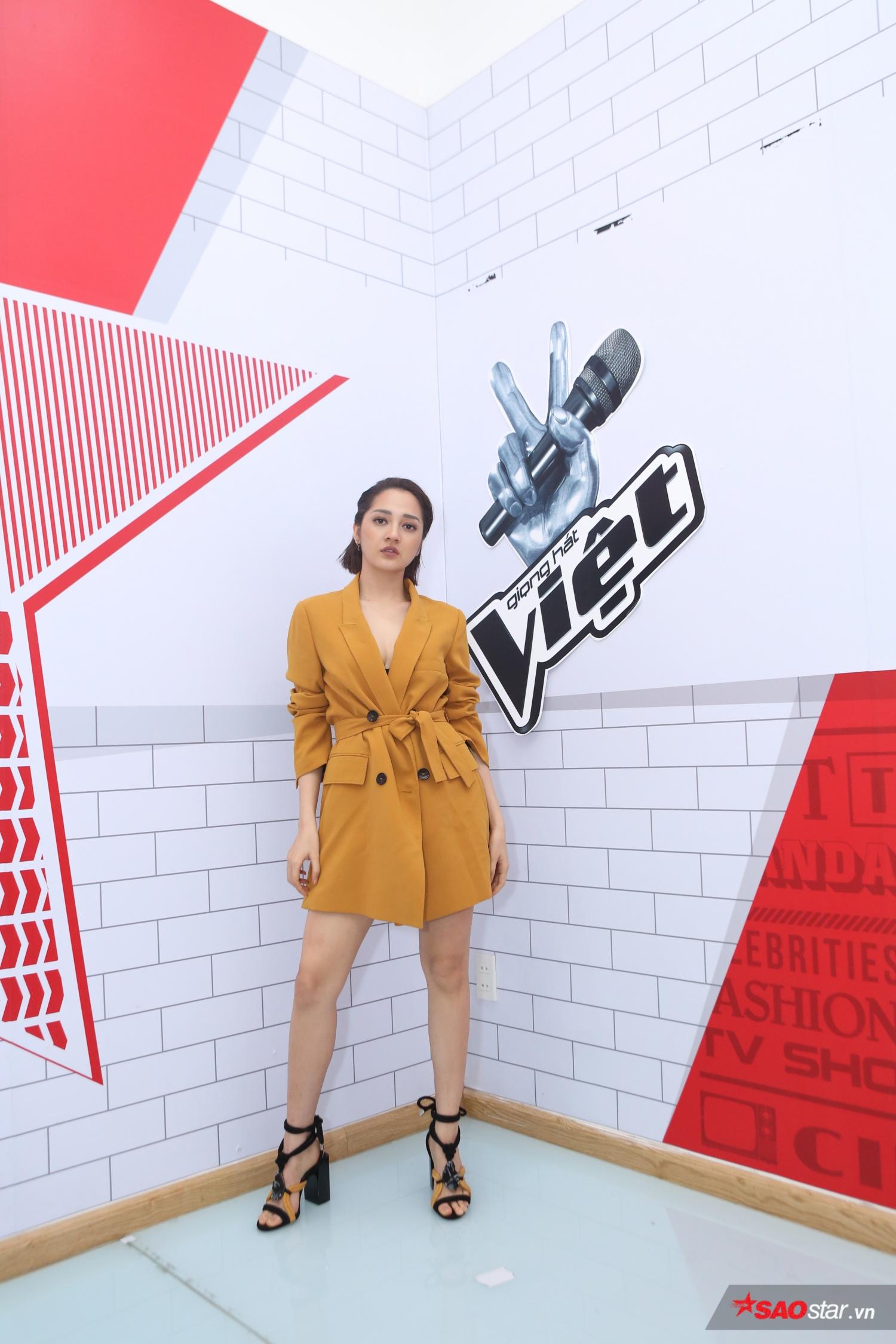 Đến với chương trình Giọng hát Việt, Bảo Anh tiếp tục áp dụng diện vest cách điệu màu vàng bắt mắt.