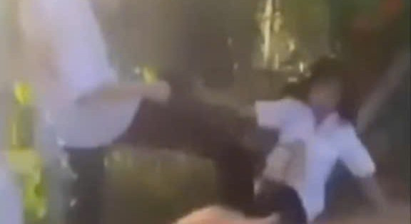 Theo clip ghi lại, hình ảnh một nam học sinh đang ngồi trên xe máy dừng ở ven đường. Sau đó, có bốn thiếu niên khoảng 12-14 tuổi (bao gồm hai người mặc đồng phục học sinh) lao tới kéo nam học sinh xuống đường, dùng chân, tay và nón bảo hiểm đánh tới tấp vào đầu và người đối phương.
