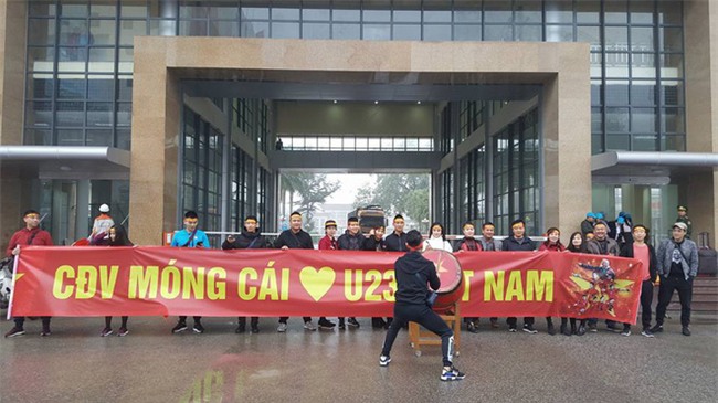 Từ ngày 25/1, nhiều cổ động viên đã có mặt tại Thường Châu. Hành lý mang theo của họ không thể vắng bóng những lá cờ đỏ, những chiếc áo màu cờ, băng rôn, khẩu hiệu mang nội dung cổ vũ tinh thần cho những chàng trai trên sân cỏ.