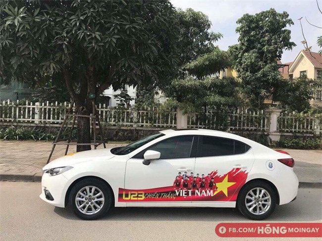 Hình ảnh những chiếc xe được dán đề can hình quốc kỳ, hình đội tuyển U23 Việt Nam đang tràn ngập mạng xã hội.