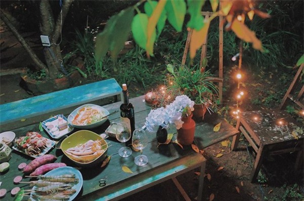 thức bữa tiệc BBQ tự tay chuẩn bị, rồi cùng nhau trò chuyện rôm rả bên