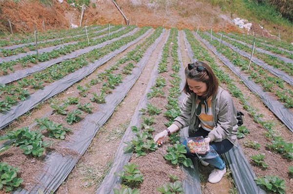 chọn vườn dâu chú Hùng để thăm thú, cũng như tự tay hái những thức rau
