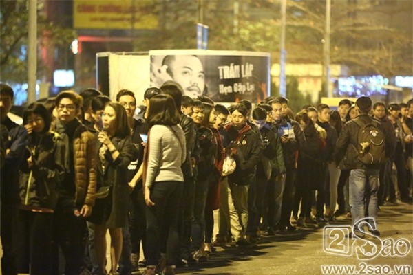Trật tự và lịch lãm, fan Trần Lập bảo nhau xếp hàng vào cổng. Lực lượng bảo vệ hầu như không cần nhắc nhở trước đội hình fan cực chuẩn này.