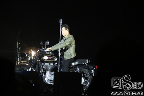 Tiến ra sân khấu trong tiếng mô tô quen thuộc, MC Anh Tuấn chia sẻ: "Phần trình diễn đặc biệt này tôi dành tặng các bạn, hãy nghe nhạc và cảm nhận thôi".