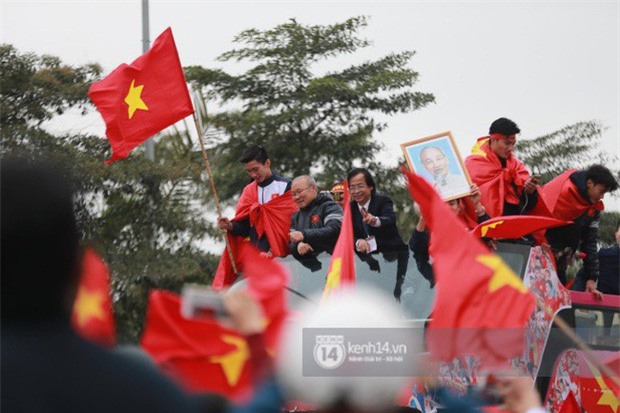 Hình ảnh HLV Park Han Seo vẫy tay chào cổ động viên dưới tán cờ rực rỡ khiến nhiều người xúc động.