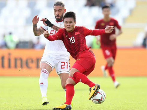 Quang Hải ghi 1 bàn tại Asian Cup 2019. Ảnh: Getty.