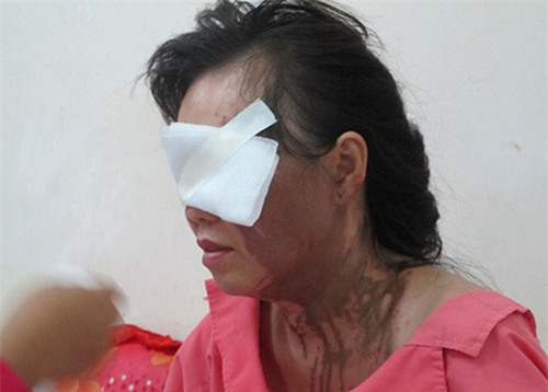 Bà Hà sau khi bị tạt axit. |