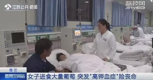 Ngay sau đó, gia đình đã nhanh chóng đưa cô Vương đến Bệnh viện nhân dân tỉnh Giang Tô để cấp cứu. Sau khi kiểm tra, các bác sĩ chẩn đoán, cô Vương bị rối loạn nhịp tim nghiêm trọng và có khả năng bị ngừng tim đột ngột. Nồng độ kali trong máu cao hơn gấp đôi so với người bình thường và được chẩn đoán là tăng kali máu.