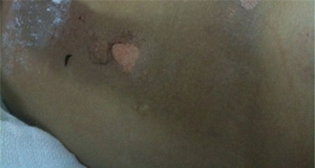 Ngoài những tổn thương nói trên, vùng cổ, ngực và bụng trái của bệnh nhân xuất hiện các tổn thương phỏng rộp đã tróc da do bị sét đánh.