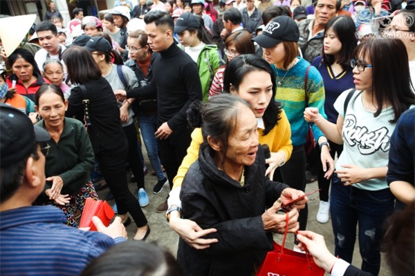 "Họa mi" ân cần đưa quà tận tay đến từng người dân.