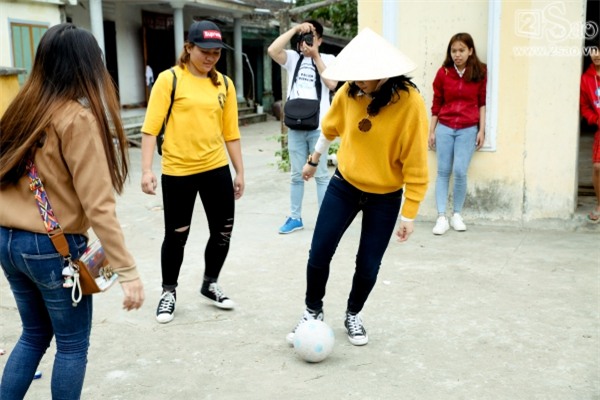 "Họa mi" trổ tài đá bóng cùng với các fans ngay tại bờ sông quen thuộc. Nữ ca sĩ chia sẻ, năm nay cô và gia đình vẫn sẽ cùng nhau nấu và gói bánh tét để thưởng thức ngày Tết.