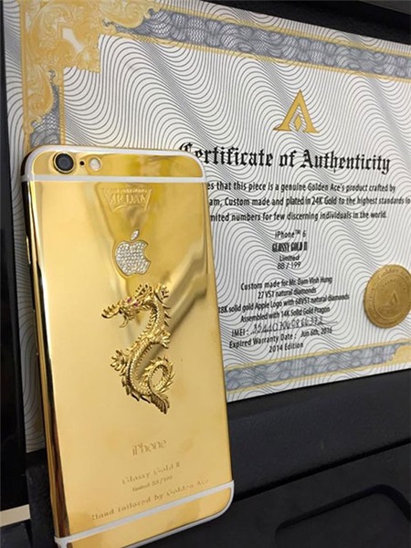 iPhone 6 dát vàng, đính kim cương và nạm hình rồng tiếp tục làm giàu