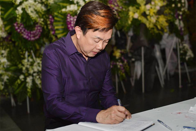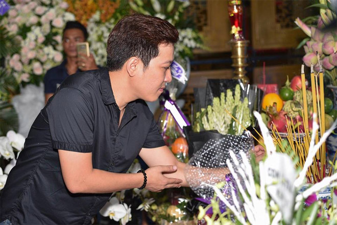 “Ông hoàng nhạc Việt” thành kính cúi đầu trước linh cữu của cố nghệ sĩ Thanh Hoàng. Dù hoạt động ở hai lĩnh vực khác nhau, nhưng nam ca sĩ vẫn rất yêu quý tác giả của “Dạ cổ hoài lang” và từng xem qua rất nhiều vở kịch, phim ảnh có sự tham gia diễn xuất của ông.
