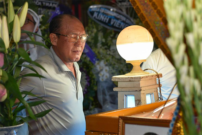 Đàm Vĩnh Hưng vừa kết thúc show diễn vào lúc 22h đêm cũng kịp có mặt để chia buồn cùng gia đình cố nghệ sĩ và thắp hương tiễn biệt đàn anh lần cuối.