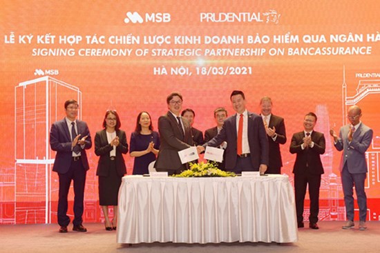 Ngày 18/3, Ngân hàng TMCP Hàng Hải Việt Nam (MSB) và Công ty TNHH Bảo hiểm Nhân thọ Prudential Việt Nam (Prudential Việt Nam) tổ chức Lễ ký kết Hợp tác chiến lược kinh doanh bảo hiểm qua ngân hàng.