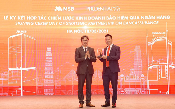 Đại diện MSB cho biết: “Chiến lược hợp tác Bancasurance đã được MSB và Prudential xây dựng từ năm 2013, áp dụng cho dòng sản phẩm bảo hiểm nhân thọ trên một số địa phương trong hệ thống của MSB. Doanh thu phí bảo hiểm đạt tốc độ tăng trưởng kép hằng năm là 34% tính từ năm 2014 - 2020.