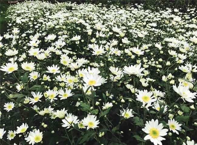 | Vì thế, diện tích hoa cúc họa mi càng ngày càng được mở rộng. Và vào thời điểm này, ra cánh đồng hoa Nhật Tân sẽ thấy cúc họa mi tràn ngập, đua nhua bung nở trắng một vùng trời |