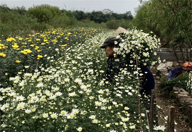 | Thời điểm này, trên cánh đồng hoa Nhật Tân, cúc họa mi đang vào mùa thu hoạch rộ. Người trồng hoa tranh thủ thu hái từ sớm tinh mơ cho đến tận chiều muộn để đủ hoa cung cấp ra thị trường |