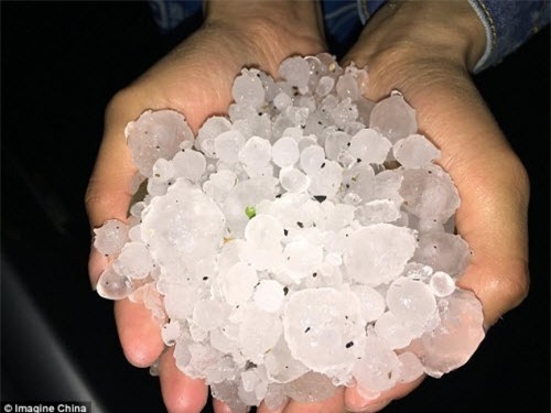 Theo tờ Nhân dân Nhật báo, trận mưa kéo dài hơn 3 giờ vào đêm 5.4 với những viên đá có kích cỡ như quả trứng gà. Những viên đá lớn đã gây vỡ cửa sổ kính và làm hư hại các phương tiện.