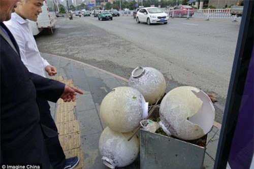 Những viên đá băng có kích cỡ tương đương quả trứng gà trong trận mưa đá tại thành phố Quý Dương. |