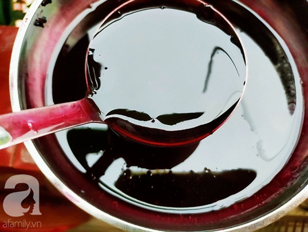 - Phần nước còn lại đun sôi lên, khi sôi thì hớt hết phần bọt nổi, dùng muôi khuấy nhẹ cho đường nếu còn đọng lại sẽ tan hết. Sau đó tắt bếp.