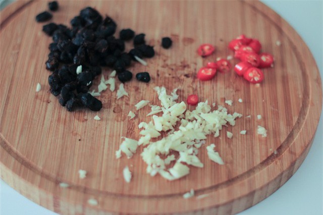 -Ngâm đậu đen đến khi mềm, tỏi, ớt băm nhuyễn để riêng ra từng phần.
