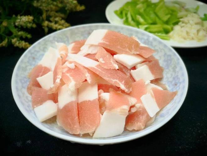 Thịt lợn rửa sạch, thái lát mỏng. Ớt xanh bỏ hạt, cắt miếng vừa ăn. Hành lá thái nhỏ. Tỏi băm nhỏ.