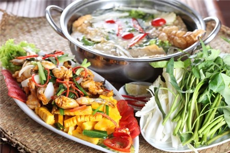 lẩu của quán được đánh giá cao, rõ vị ngọt đậm. Đùi ếch thơm và nhiều