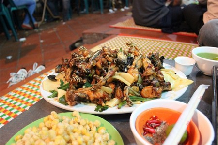 hùi hụi bởi hương thơm nồng nàn của các món ếch được chế biến. Dù quan