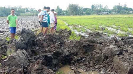 Sáng 9/9, Ban Chỉ huy quân sự xã Phú Điền (huyện Tháp Mười, tỉnh Đồng Tháp) đã xuống khảo sát hiện trường vụ bom nổ xảy ra giữa cánh đồng lúa Phú Điền.