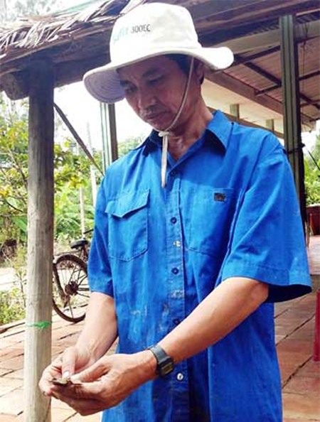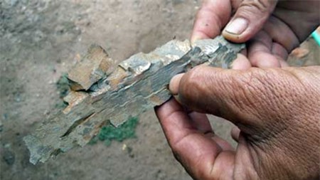 Những mảnh bom được người dân nhặt tại hiện trường vụ nổ. |