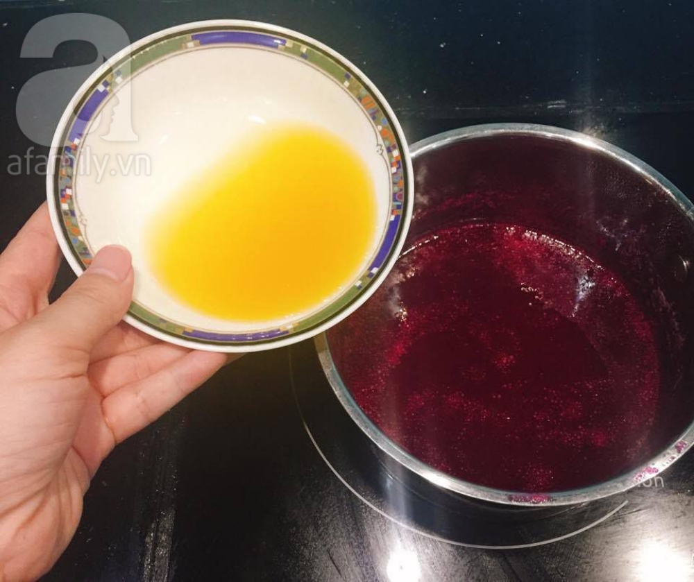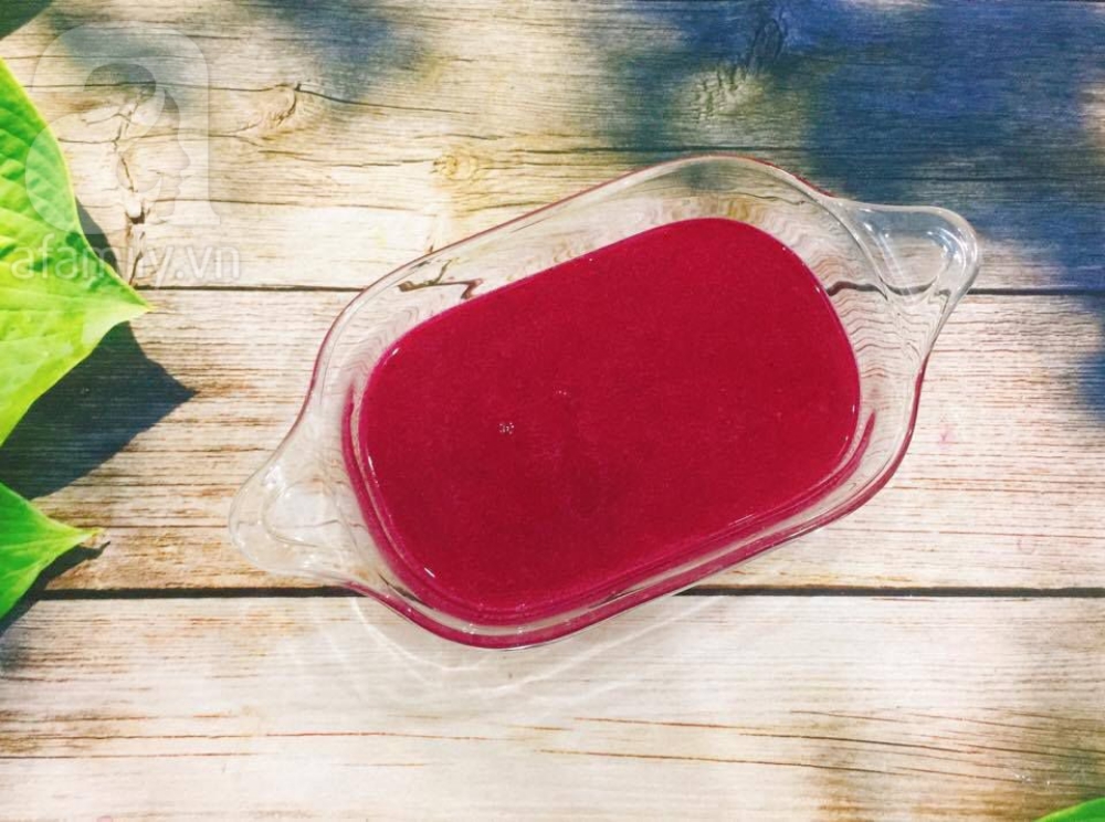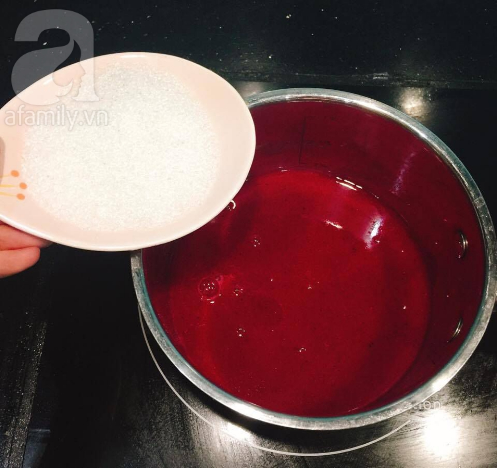 Hòa nước cốt thanh long cùng 300ml nước lọc, 200gr đường và đun trên bếp, lưu ý để lửa nhỏ sôi liu riu tránh hỗn hợp sôi bùng tạo bọt.