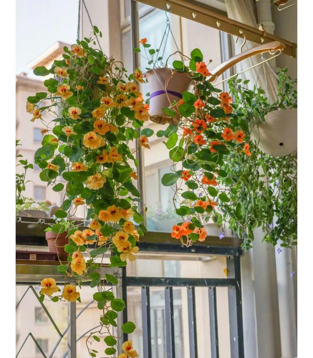 Nếu không gian trồng hoa tại nhà nhỏ, bạn có thể chọn cách treo một chậu son môi ở cửa sổ hoặc hiện nhà, tạo nên tấm rèm xanh rất dễ chịu, đẹp mắt.