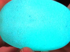 Theo chủ sở hữu, hòn đá to bằng quả trứng vịt này có khả năng tự phát sáng màu xanh rất lung linh, huyền ảo, đủ sáng để uống trà thâu đêm. Có người gạ đổi ngang món đồ cổ trị giá 500 triệu đồng nhưng ông không đồng ý.