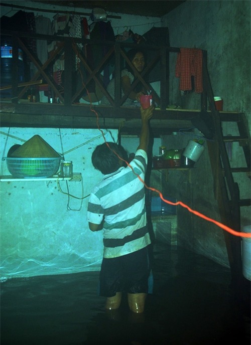 “Nay nước đã rút bớt nhưng vẫn còn ngập tới lưng quần. Do chúng tôi đều là công nhân có hoàn cảnh khó khăn nên đành bấm bụng ở đây. Nhiều người có tiền đã dọn đồ đi nơi khác ở rồi, họ chấp nhận bỏ luôn tiền cọc vì sợ chập điện”, một thanh niên thuê trọ cho biết.