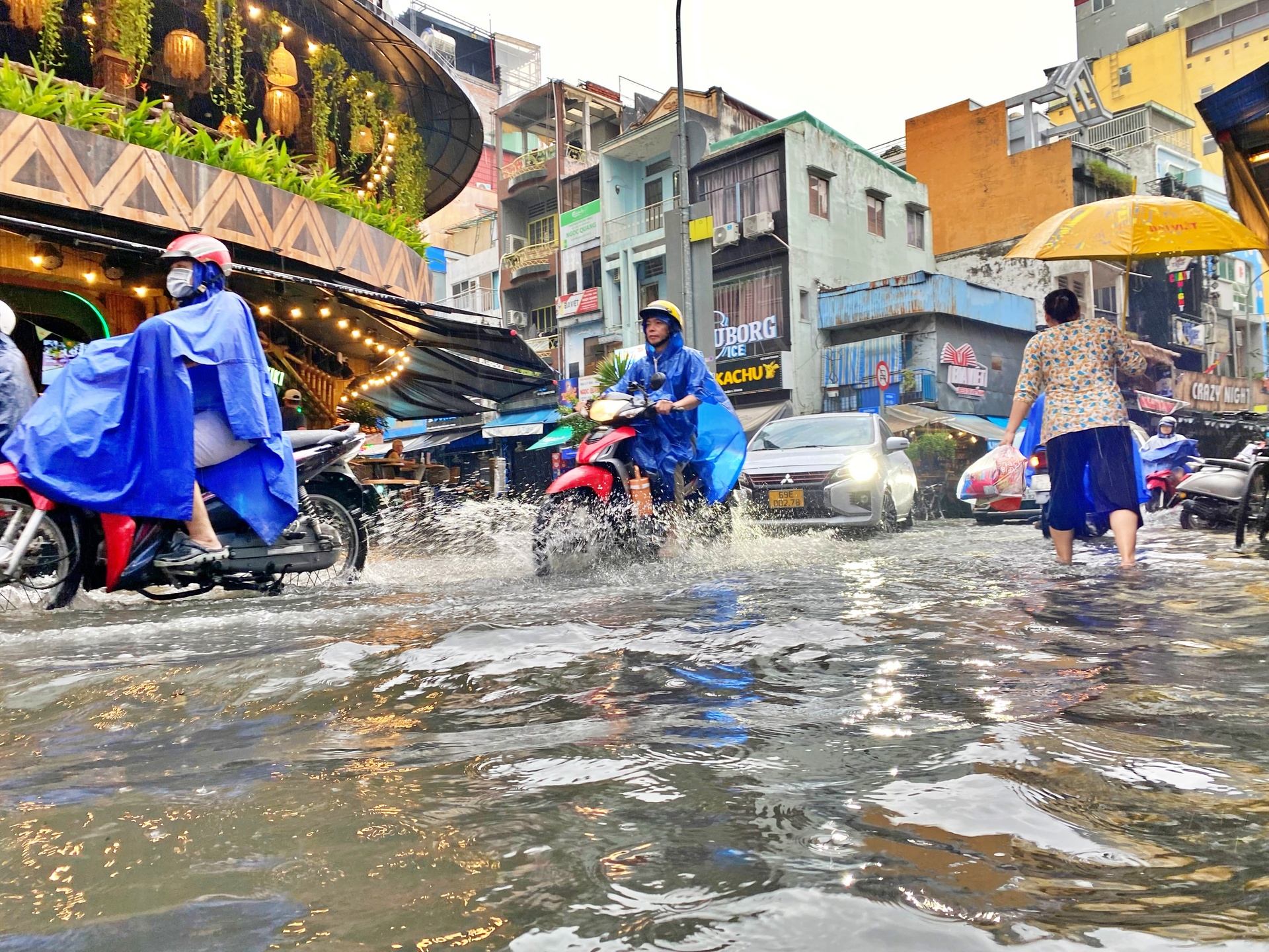 Chiều 8/10, TP.HCM mưa lớn diện rộng kéo dài khiến nhiều tuyến đường ở trung tâm ngập cục bộ.