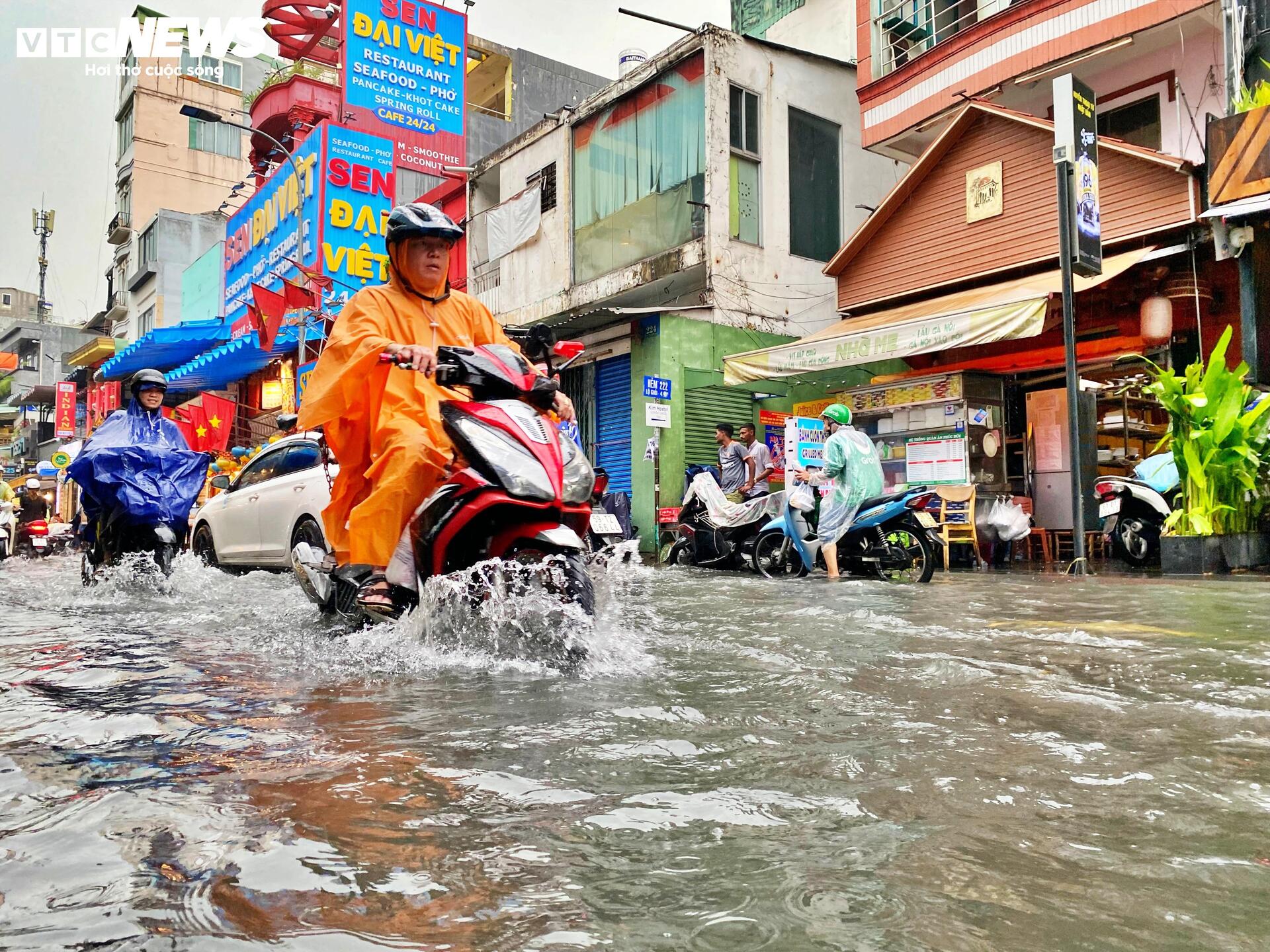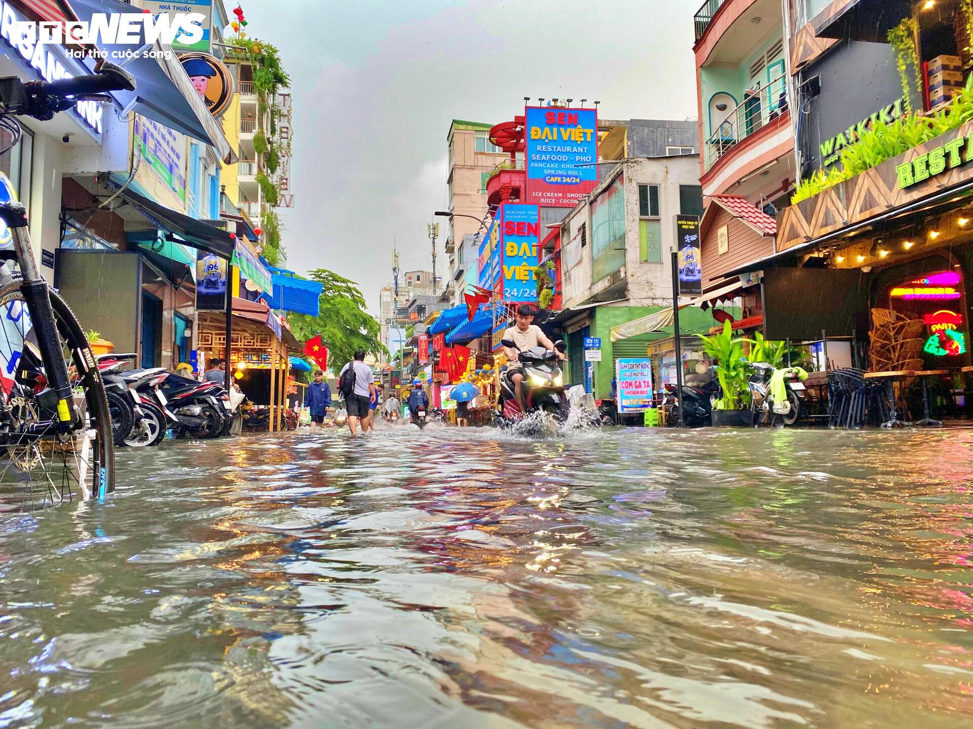 Ghi nhận của PV Báo điện tử VTC News, một phần đường Bùi Viện (Quận 1) bị ngập nặng sau mưa lớn.