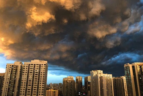 Chiều 26/6, Hà Nội xuất hiện cơn giông lớn, mây cuồn cuộn giăng kín bầu trời. Nhiều hình ảnh về đám mây giăng kín bầu trời Thủ đô được chia sẻ trên mạng xã hội.