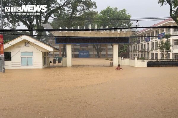 Người dân Yên Bái lo lắng nhìn dòng lũ lớn ngay giữa lòng thành phố.