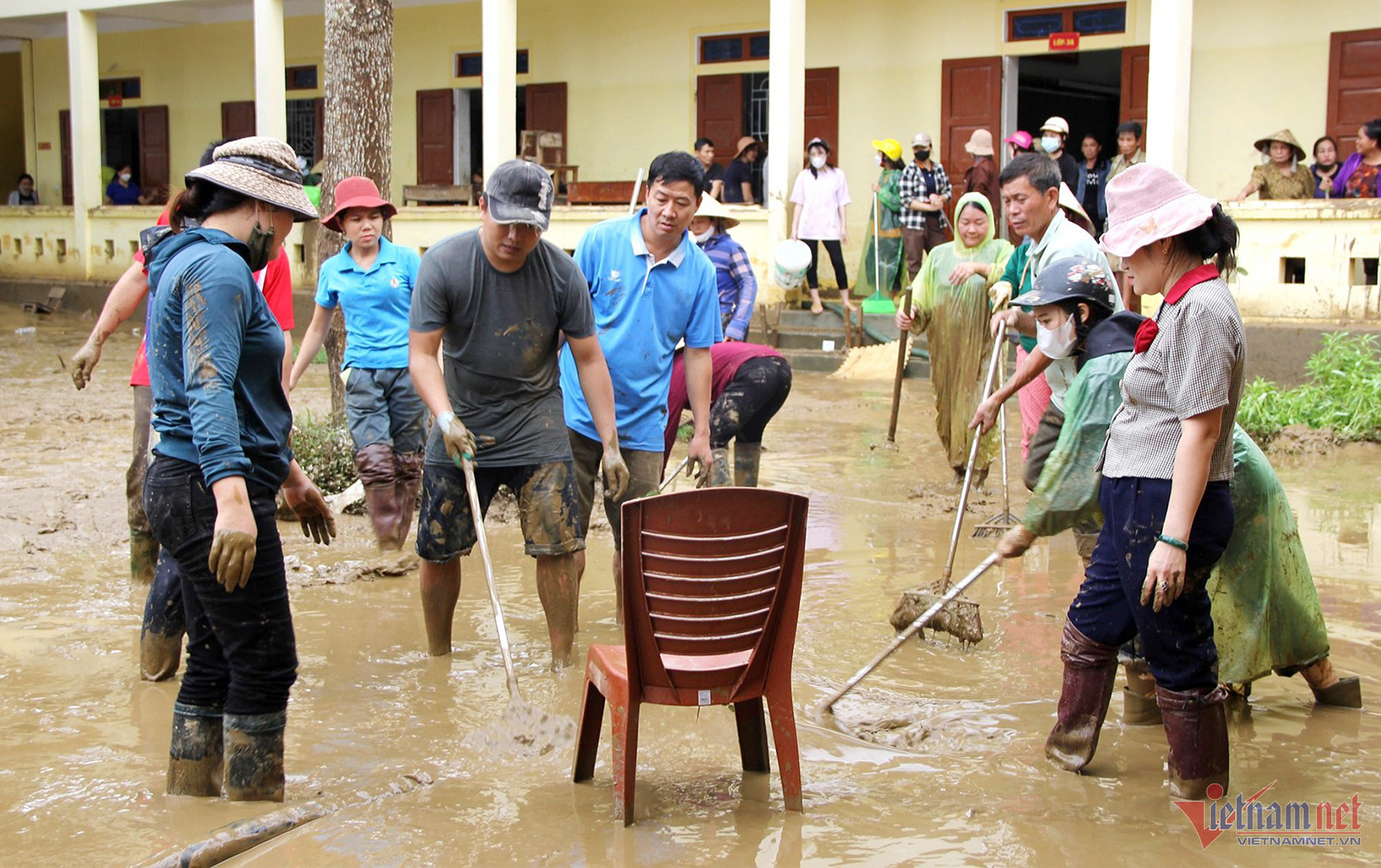 Nỗ lực dọn dẹp bùn đất. Ảnh: Việt Hoà