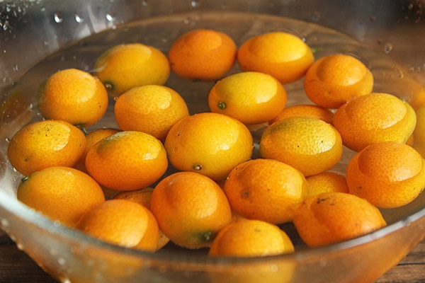 Quất ngâm trong nước khoảng 10 phút sau đó rửa sạch rồi để ráo nước. Thấm khô quất rồi để quất khô vỏ hoàn toàn.