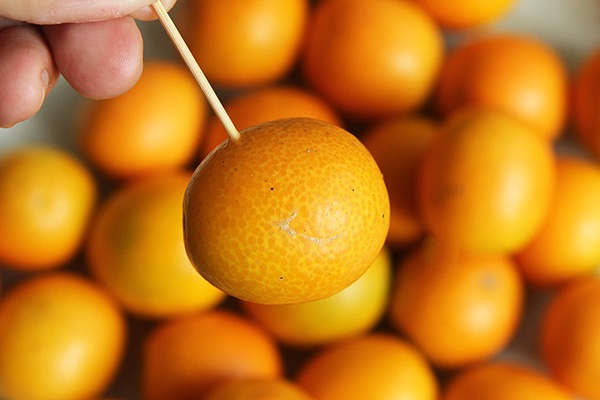 Quất sau khi khô dùng tăm nhọn châm vài lỗ trên quả quất.