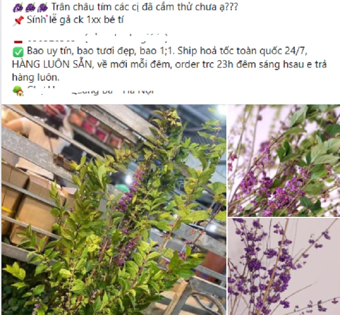 "Cây Tử Châu vốn là loại hoa dại nhưng trước công dụng làm thuốc nam hiệu quả, nhiều nơi đã nhân giống để trồng. Nhất là năm nay, Tử Châu lại "rơi vào tầm ngắm" của chị em Hà Thành, thấy cắm bình đẹp các bà nội trợ đặt mua nhà mình nhiều lắm. Hàng ngày mình nhận đơn tới 11h đêm, sáng hôm sau sẽ giao hàng sớm. Giá nhà mình để công khai 120k/1 sét chục cành, đảm bảo quả tươi, căng bóng", chị Ngọc kể.