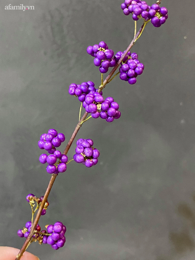 Những đốm nhỏ tím lịm duyên dáng sẽ đốn tim những người yêu màu tím. Quả này ăn được hoặc có thể làm thuốc nhưng theo định lượng rất rõ ràng. Mình thì chỉ cắm chơi thôi ạ".