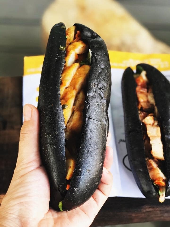 Cận cảnh chiếc bánh mì đen gây sốt cộng đồng mạng vì vẻ ngoài độc đáo. (Ảnh: Bamimo)
